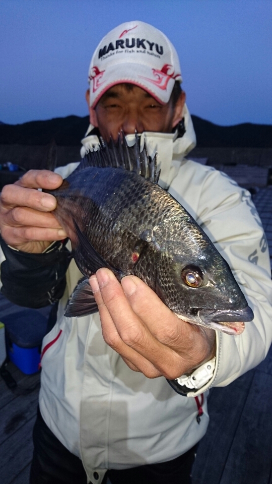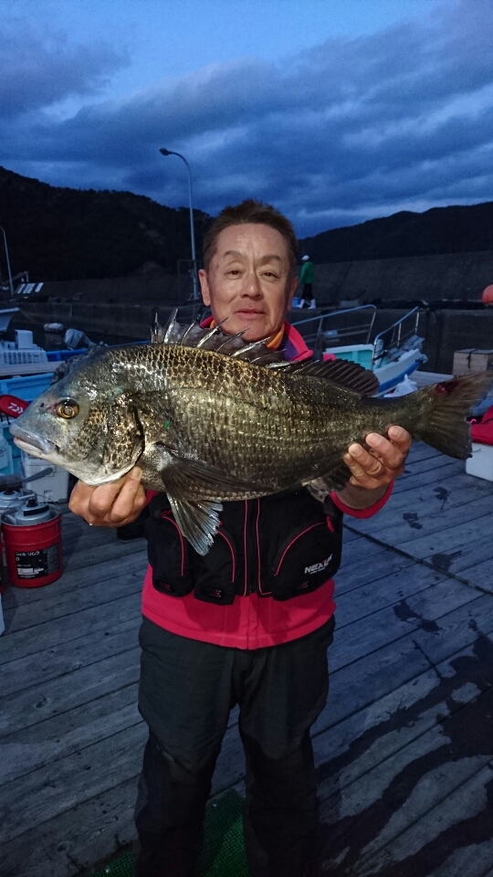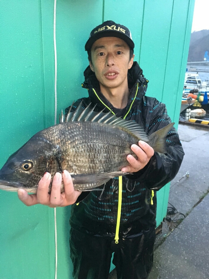 39㎝ 餌・ボケ 久保氏 あみほし場にて‼5時半頃の落とし込みでGETです(^-^)v -