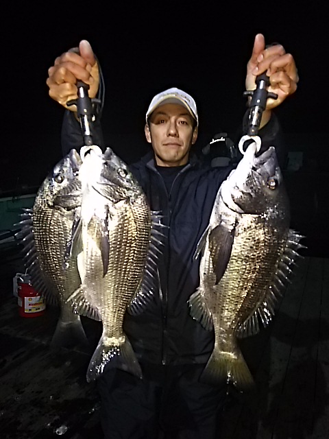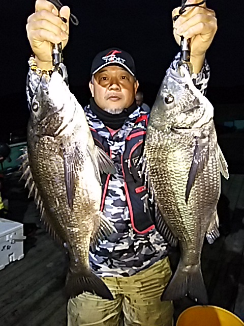 43㎝~39㎝ 4枚 餌・沖アミ 谷村氏 オクチカセにて‼ 45㎝ 餌・ボケ 宮田氏 オクチ筏にて‼ 44㎝ 餌・沖アミ 木村氏 ムカエ筏にて‼ -