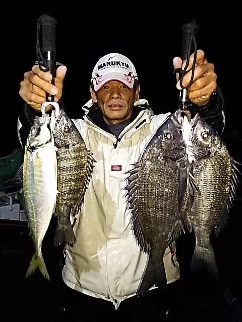 53㎝ 48㎝ 45㎝ 餌・ボケ 中口氏 ムカエ筏にて‼まだ、湾内にこの魚体色・このサイズのチヌがいますよ(^o^)v 46㎝ 餌・沖アミ 杉原氏 弁天筏35mにて‼2日程前からアイゴが落ちて来ました‼本格的なシーズンに入るのは1月からか…