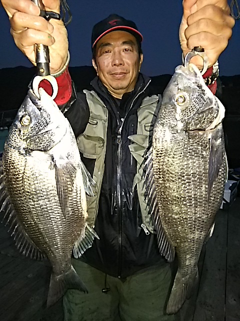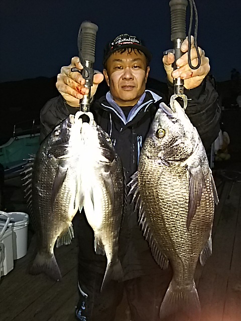 46㎝ 41㎝ 餌・沖アミコーン抱き合わせ 安藤氏 オクチ筏にて‼午後からボラばんでした‼ -